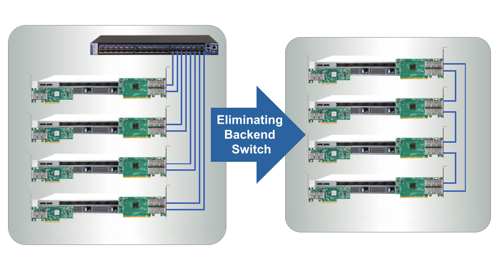De kracht van de HPE ProLiant Gen10 Plus uit door maar liefst twee (2!) 100Gbit Ethernet poorten te bieden. Innovatieve fabrikant Mellanox zet de kers op de taart door ondersteuning voor een 100 Gbit ring topologie in te bouwen. En die leent zich uitstekend voor de verschillende varianten van VMware vSphere infrastructuur verkeer. Liefhebbers van vMotion, vSAN en Fault Tolerance kunnen hun hart ophalen. Ditch the switch is daarbij het motto dat “binnen bereik” inhoud geeft, omdat in veel gevallen dit verkeer binnen één vSphere datacenter blijft.